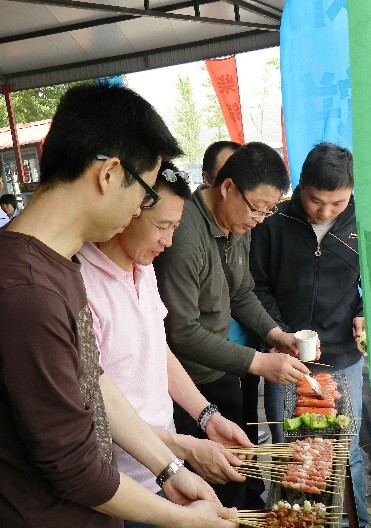 活动结束后到了中午,大家开始准备午餐了,午餐我们选择的是自助烧烤,通过自己辛勤的努力来烹饪可口的美食;大家围在烧烤架旁,一边涂着各种调料,一边有说有笑,不一会香味就充斥了整个场地。